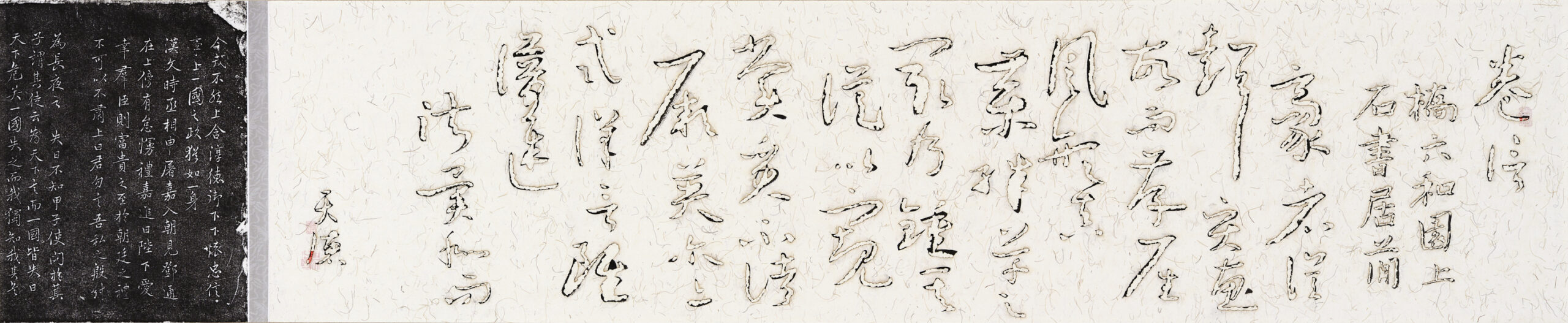「书法」36x174cm宣纸、墨、焰、拓片2021